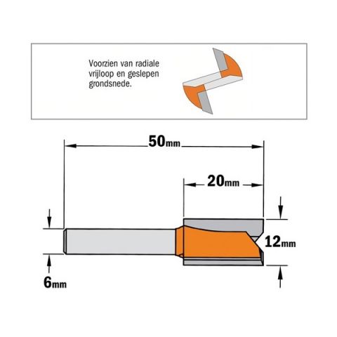 CMT groeffrees Ø12x20/50mm. Z=2 S=Ø6