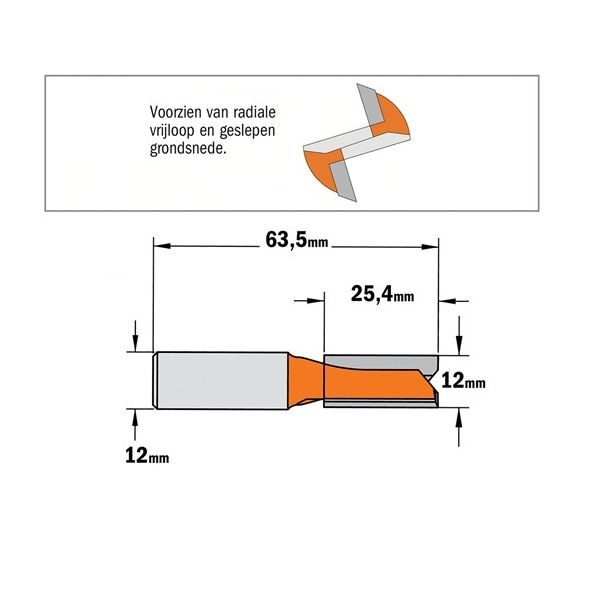 CMT groeffrees Ø12x25,4/63,5mm. Z=2 S=Ø12