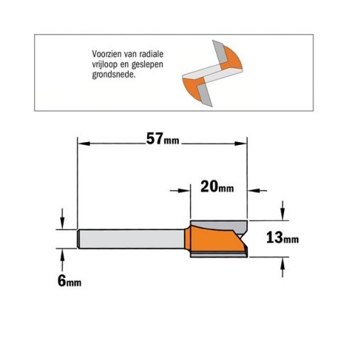 CMT groeffrees Ø13x20/57mm. Z=2 S=Ø6