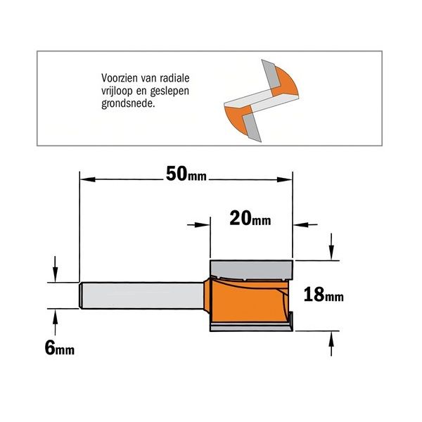 CMT groeffrees Ø18x20/50mm. Z=2 S=Ø6
