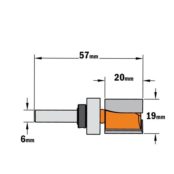 CMT kantenfrees Ø19x20/57mm. (met lager) Z=2 S=Ø6