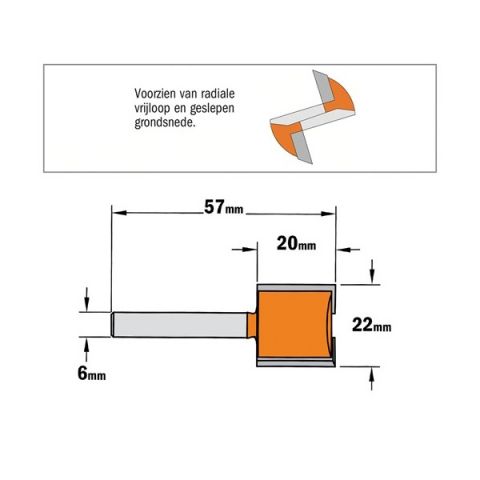 CMT groeffrees Ø22x20/57mm. Z=2 S=Ø6