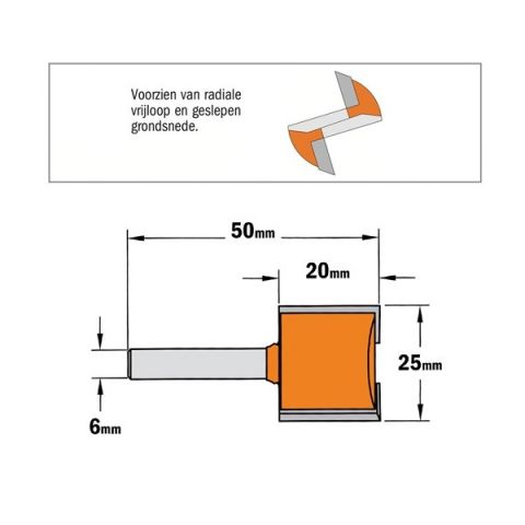 CMT groeffrees Ø25x20/50mm. Z=2 S=Ø6