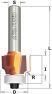 De holle CMT radiusfrezen geven een enorme keuze aan profielen, aan te raden op ingangstukken en op de zichtbare boorden van het meubel. Verlaag het gereedschap zo danig, dat men het rechte stuk van de snijkop ziet: zo kan men een decoratief tintje geven aan de boorden van tafels, laden en balken. Passeer twee keer na elkaar (draai het hout om voor de tweede passage) en men kan onmiddellijk de boord met dubbele radius maken zonder een andere half-ronde frees te moeten gebruiken. De holle radiusfrezen met (739-939) uithollingen gebruiken een kleiner geleide lager in verhouding tot de frezen met holle radius (738-938); daarom bekomt men, langs het lagere snijgedeelte, een uitholling meer. CMT bied een keuze uit dertien radiusmaten, het grootste gedeelte met vijf verschillende schachten. Elke frees heeft een structuur in mikrokorrel hardmetaal.