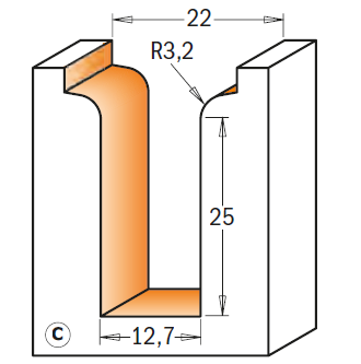 Hm klassieke profielfrees Ø22- Ø12,7 x31,7/69 mm. R3,2