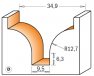 Hm klassieke profielfrees Ø34,9-Ø9,5 x 25/65,5mm. R12,7