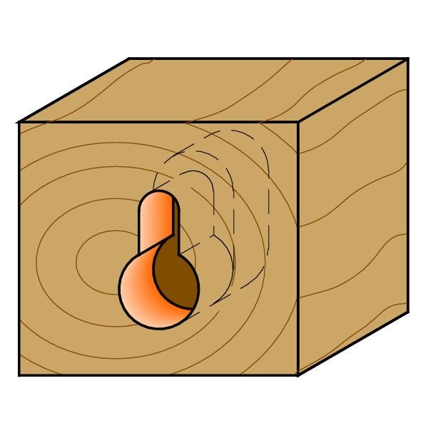 De frezen voor sleutelgaten laten u toe lijsten, tegels of decoraties in hout perfect langs de muur te bewerken. Eerst en vooral boort het gereedschap de ingangsopening. Terwijl de freesmachine voortschrijdt, snijdt de kleine diameter een snede van 4.8mm breed terwijl de grotere diameter een grotere snede op het oppervlak maakt. Deze operatie creëert een steun voor de schroefkoppen of de nieten.