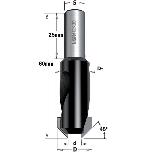 HM verzinker Ø16mm, 45º voor boren Ø5mm