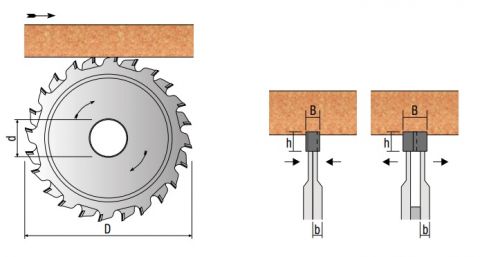 - De zaagsnede van dit ritssysteem bedraagt ca. 0,3 mm breder dan de zaagsnede van de hoofdzaag.