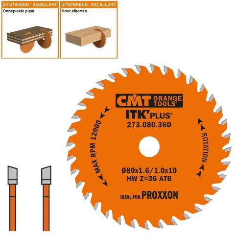 CMT cirkelzaag Ø 80 x 1,6 x ø10 z=36 wisseltand