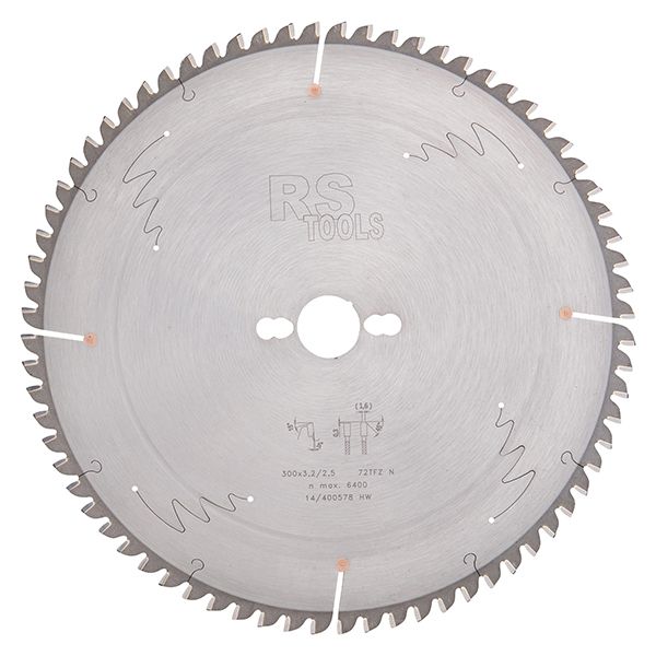 Hardmetalen zaagblad van RS Tools Ø 300 z= 72 Trapezium Vlaktand Negatief. Van hoge Duitse kwaliteit!, voor het zagen van harde kunststoffen als trespa en non ferro metalen als aluminium.