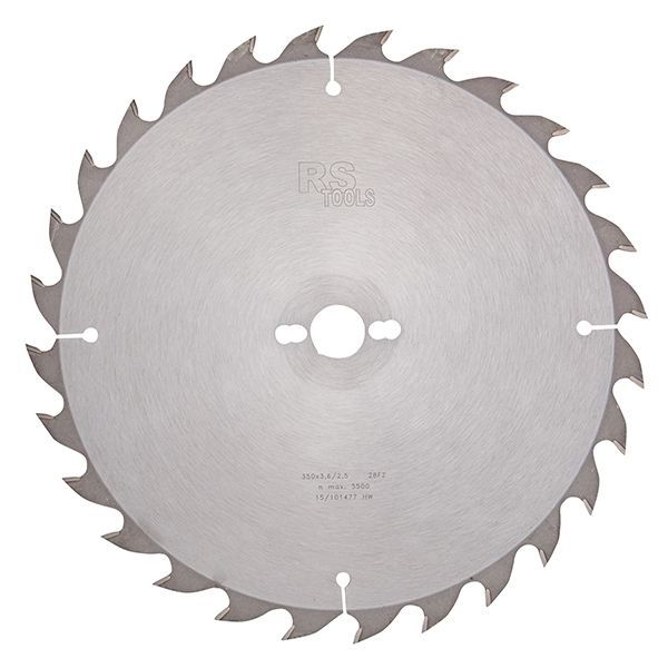 Hardmetalen zaagblad van RS Tools met Vlaktand. Van hoge Duitse kwaliteit!, voor het zagen van massief zacht of hard hout in de lengte/vezelrichting. Geeft een vrij grove zaagsnede en grote spaan.