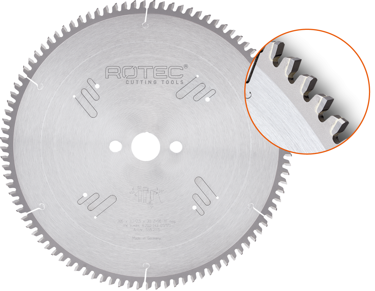 ROTEC HM Zaagblad Ø350x3,3/2,8xø30 Z96 TF neg.