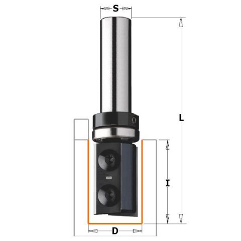 Rechte bovenfrees met twee vervangbaar messen met inboor functie. Vastgezet met speciale Torxschroeven. De bovenfrees is met precisie gebalanceerd. Voor het afwerken en frezen, verzonken snijden en maken van gleuven in spaanplaat en aanverwant materiaal én hardhout. Voor gebruik op draagbare bovenfreesmachines en CNC machines.