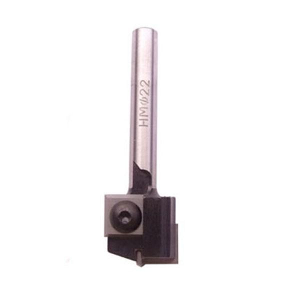 Rechte bovenfrees met twee vervangbare messen vastgezet met speciale Torxschroeven. De messen zijn aan 4 snedig. Met HM plaat in het center om te boren.