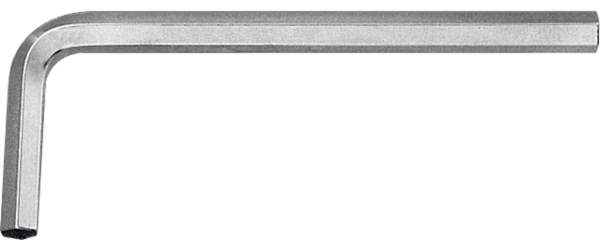 Gebogen schacht; gebaseerd op DIN 911 / DIN ISO 2936 / ASME B18.3 (3/32 inch). Chroom-vanadiumstaal, kopse kanten vlak bewerkt en afgeschuind. Vernikkeld oppervlak.