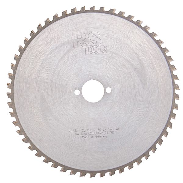 Hardmetalen zaagblad van RS Tools Ø 232,5 z= 54 Dry-Cut voor staal. Van hoge Duitse kwaliteit.