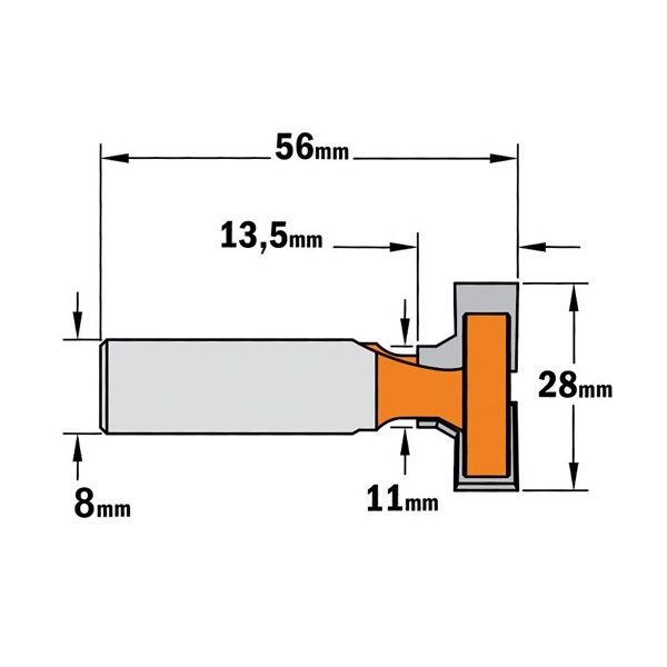 Vraag over CMT T-gleuffrees Ø28 x 13,5mm. Z=2 S=Ø8
