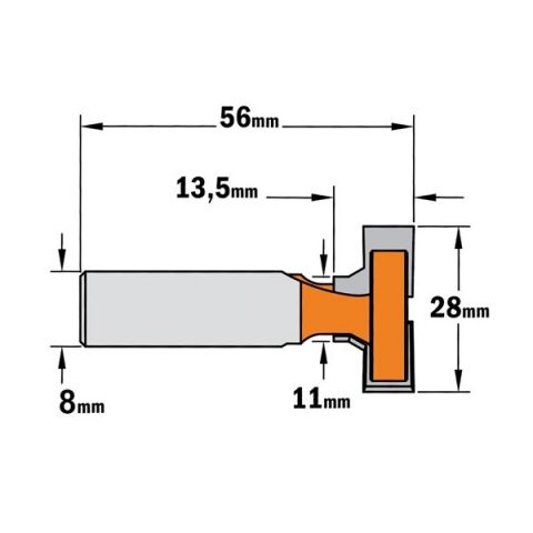 CMT T-gleuffrees Ø28 x 13,5mm. Z=2 S=Ø8