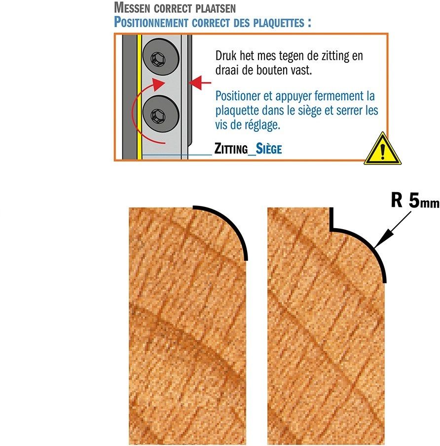Afrondwisselmesfrezen voorzien van 2 wisselmessen, elk mes is voorzien van 2 snijkanten (Z=2). De messen van 661.xxx.41 hebben elk 4 snijkanten (Z=4). Te gebruiken voor het afronden van massief hout en alle plaatmaterialen en kunststof-producten. Voor gebruik in handbovenfreesmachines en – zonder lager – ook te gebruiken in CNC-gestuurde bovenfreesmachines.