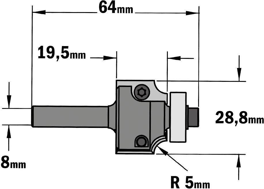 CMT wisselmes afrondfrees Ø28,6mm. R=5 S=Ø8