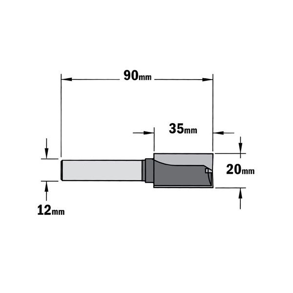 CMT groeffrees Ø20x35/90mm. Z=2+1 S=12