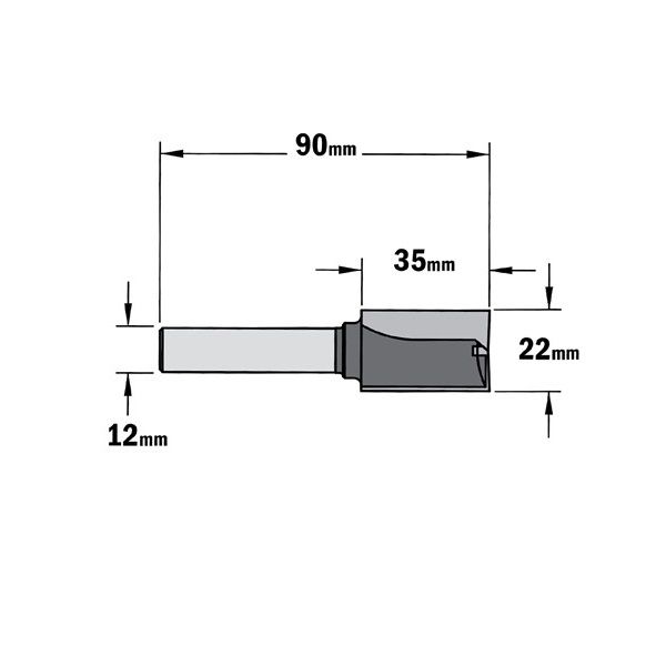 CMT groeffrees Ø22x35/90mm. Z=2+1 S=12