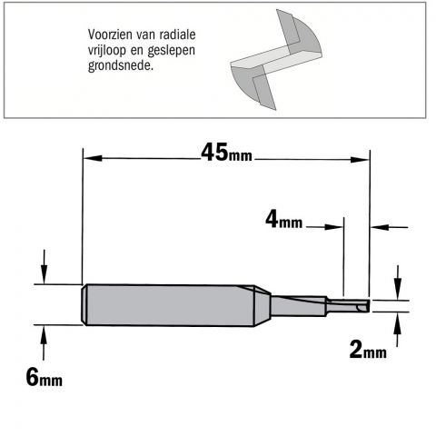 CMT groeffrees Ø2x4/45mm. Z=1 S=Ø6