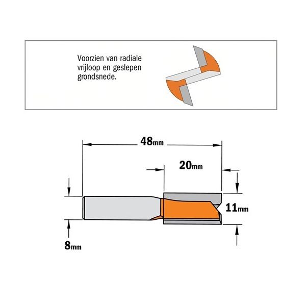 CMT groeffrees Ø11x20/48mm. Z=2 S=Ø8