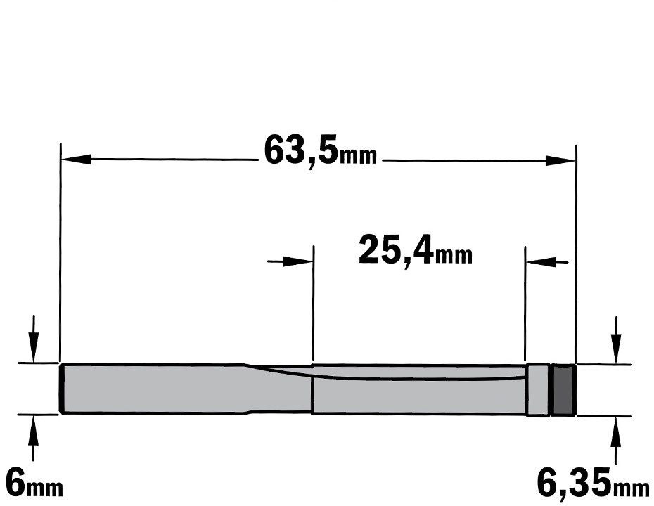 CMT - VHM kantenfrees Ø6,35 x 25,4/63,5 mm. S=Ø6 (met lager)