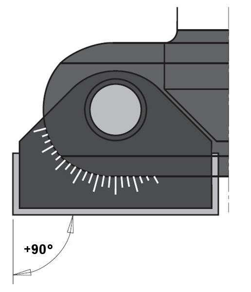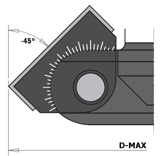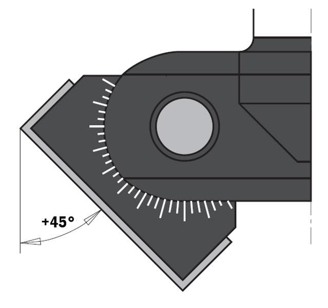 - Verstelbaar zwenkbaar mes (Draait met intervallen van 7,5°; Precisie = 7,5°);