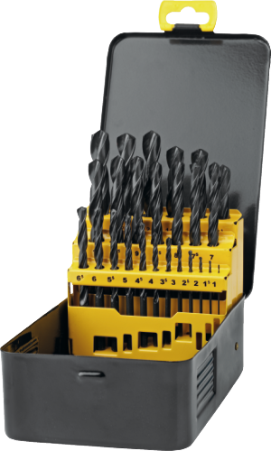 DIN 338, gewalste uitvoering, in stalen cassette, gevuld met boren uit artikelgroep 11.400