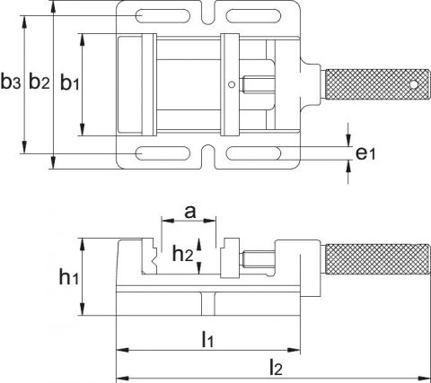 met vlakke vaste bek en bewegende bek, de bekken, geleiding en onderzijde van de klem zijn geslepen, met horizontale en verticale V-groeven