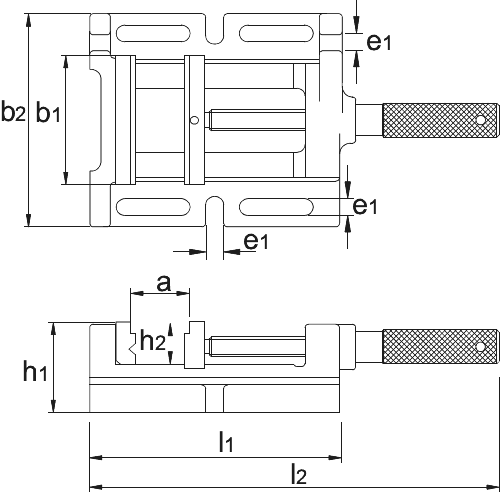 met vlakke vaste bek en bewegende bek, de bekken, geleiding en onderzijde van de klem zijn geslepen, met horizontale en verticale V-groeven, met 3-zijdige opspanmogelijkheden op de machinetafel