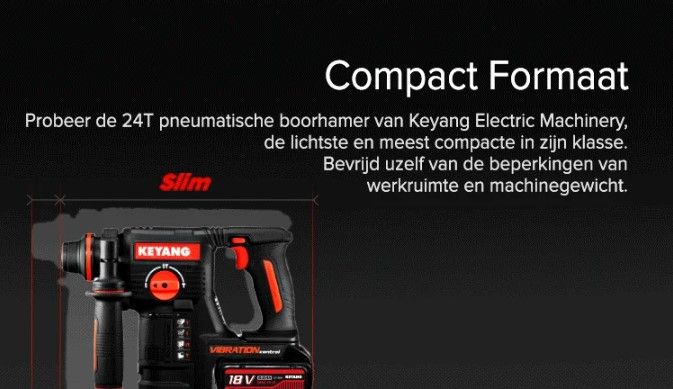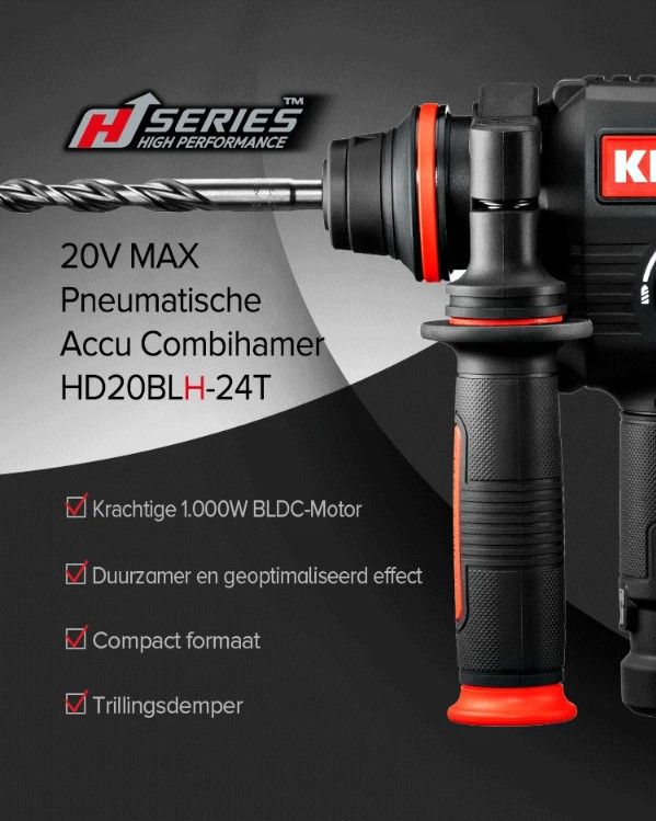 Kenmerken Keyang HD20BLH24T Accu Combihamer – SDS-Plus – 18V (20V max) set (2x 5.0Ah accu) in koffer