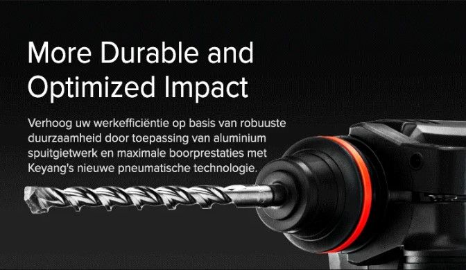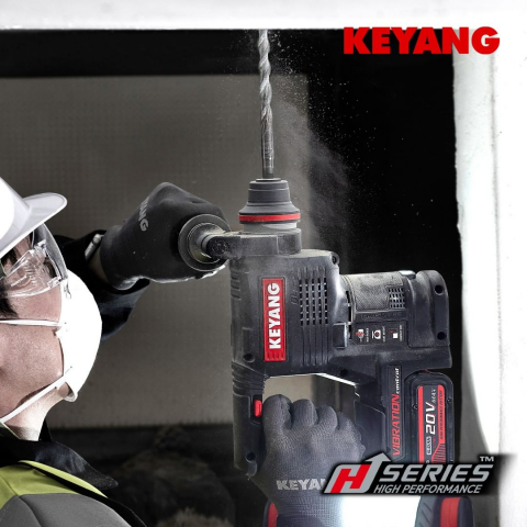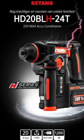 Ten opzichte van zijn voorloper HD18BL, is de HD20BLH voorzien van een trillingdemper, die de trillingen tijdens het werk minimaliseert. Vanzelfsprekend kun je hiermee boren, hamerboren en beitelen. De vlakke beitel is gemakkelijk te vergrendelen. De machine ligt fijn in de hand door het diamant patroon grip, waar Keyang bekend om staat. Daarnaast beschikt de machine over een hoge intensiteit ledverlichting.