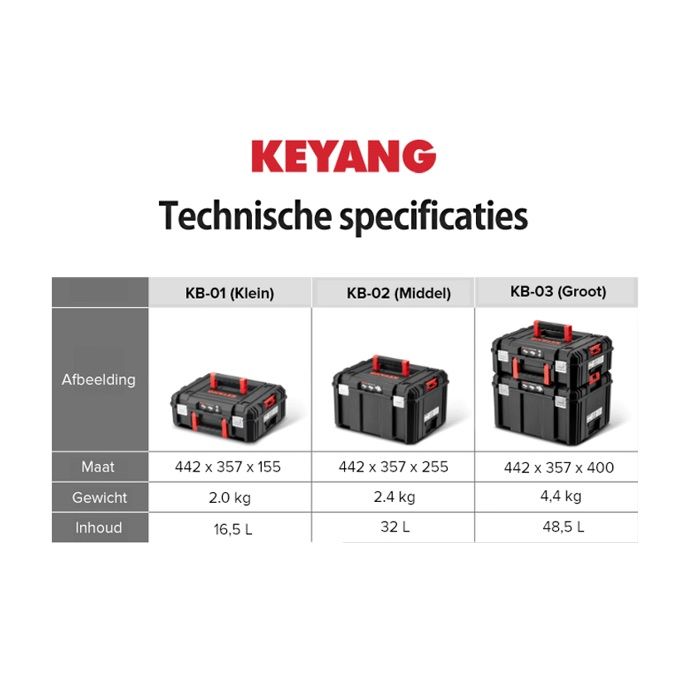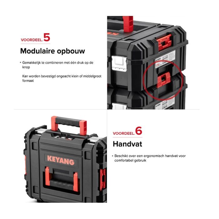 Alle Keyang gereedschapskoffers zijn samen te gebruiken.