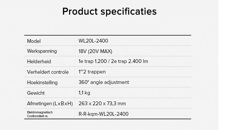 Vraag over Keyang WL20L-2400 accu werklamp 18V (20V MAX) - LOSSE BODY