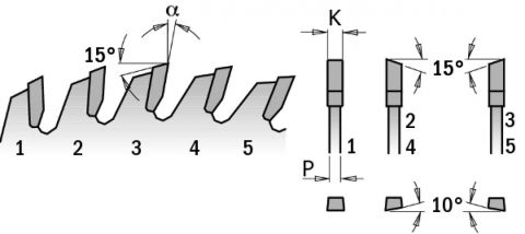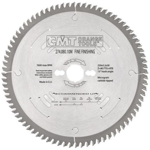Snijdiameter D : 250 mm Asgat B : Ø30 mmm Tanddikte K : 3,2 mm Zaagblad dikte P : 2,2 mm Aantal tanden Z : Z80 hoek A : 15° Slijptype β : 1FTG+4ATB meeneemgaten COMBI3: 2/7/42 + 2/9.5/46.5 + 2/10/60.