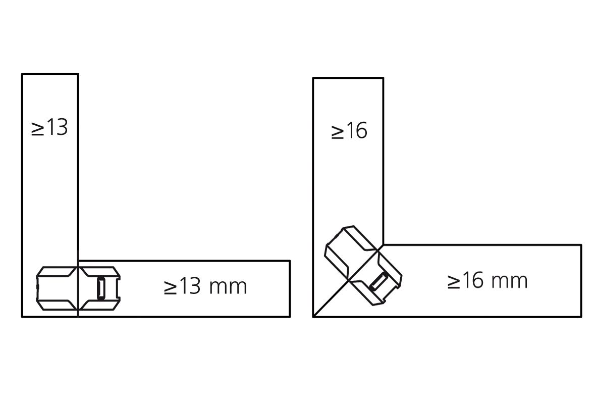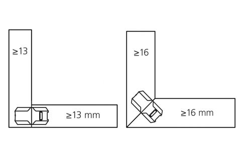 - Dunnere materialen vanaf 12 mm, Verstekverbinder vanaf een materiaaldikte van 16 mm