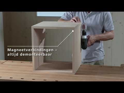 - Inbouwkasten en grote meubels in meerdere delen transporteren en snel en onzichtbaar ter plaatse met elkaar verbinden