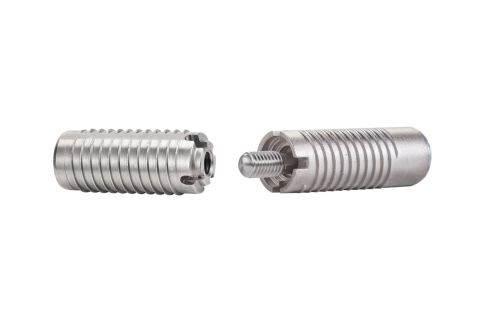 - De schroefdraad in de verbinder wordt in de inwendige schroefdraad van de bevestigingsmoer geschroefd, volledig zonder aanraking door het magneetveld aangedreven