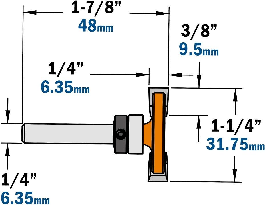 Vraag over CMT T-gleuffrees met lager Ø31,75 x 6,35 mm. L=47,6 H=9,5 S=Ø6,35