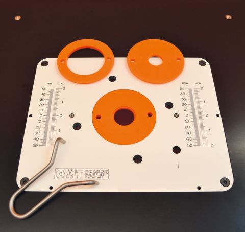 - -Het tafelblad wordt geleverd met 3 aluminium tafelringen en een aluminium geleidebaan voor een verstekgeleider.