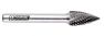 Carbide Rotary Burrs in shape G (Three Double Cut). This burrs has a shaft of ø 6mm.