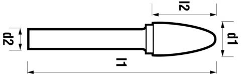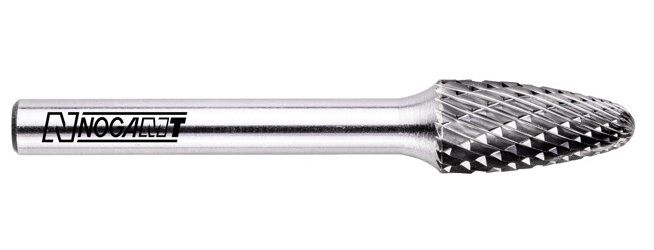 Carbide Rotary Burrs in shape F (Ball-Nose three Double Cut). This burrs has a shaft of ø 6mm.