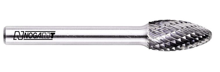 Carbide Rotary Burrs in shape H (Flame Double Cut). This burrs has a shaft of ø 6mm.