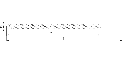 DIN 340, type TS, met sterke spiraalhoek, cil. schacht, lange uitvoering, met kruisaanslijping tot 3 mm, vanaf 3 mm met S-aanslijping, tophoek 130°
