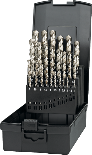 DIN 338, in kunststof cassette, gevuld met boren uit artikelgroep 11.710