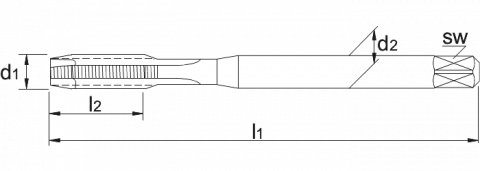 DIN 371 en DIN 376, 60°, verdikte schacht, met schilaansnijding voor doorlopende gaten, aansnijding 4-5 gangen, tevens geschikt voor ongelegeerd staal